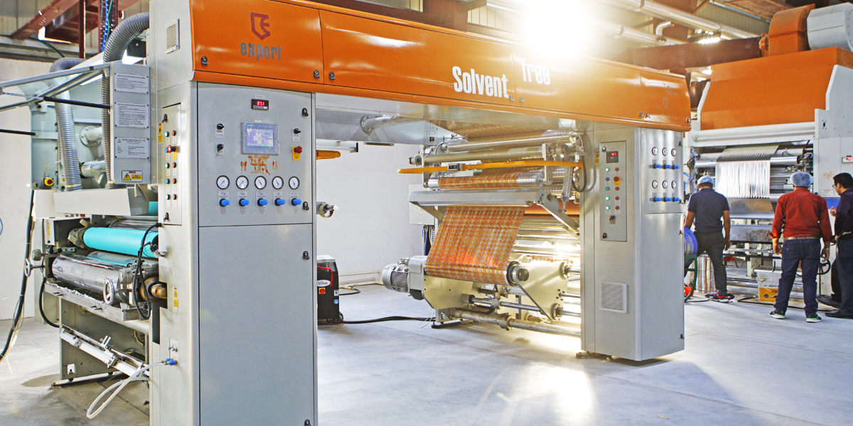 Rotogravure printing with a modular design concept and operator friendly design our coating and lamination machine offer precise coat weight accuracy and a very high level of drying efficiency. Our Coating and Lamination machine is engineered with state-of-the-art technology for quality production of a wide range of flexible packaging materials from light weight films to medium weight paper, laminates and aluminum foil. It also offers various in-line processes such as Register cold seal application on preprinted material, Register Lamination of two pre-printed materials, lamination of three substrates in one pass.