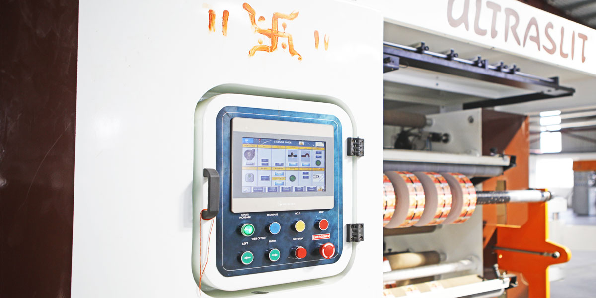 Our Slitting machine is engineered to handle a wide range of flexible materials from light weight films to medium weight paper, label stock and laminates with an operator friendly design. It also offers various options such as integral unwind reel stand, separate floor standing unwind reel stand, splice table, inspection table and overhead webpath. Our Slitting machine offers precise cutting accuracy and a high level of productivity. Apart from providing a hygienic work environment, the overhead path of the ULTRASLIT ® OHP Duplex Slitter Rewinder offers a hygienic work environment, easier web passage and allows larger reel diameters.